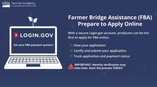 Additionally, producers eligible under the initial wave of FBA are encouraged to prepare for program access by creating a Login.gov account here. You can find more general information about the FBA program here.